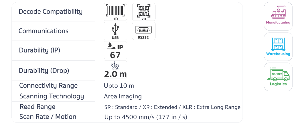 เครื่องอ่านบาร์โค้ดไร้สายที่ผ่านมาตรฐานสุดแกร่ง