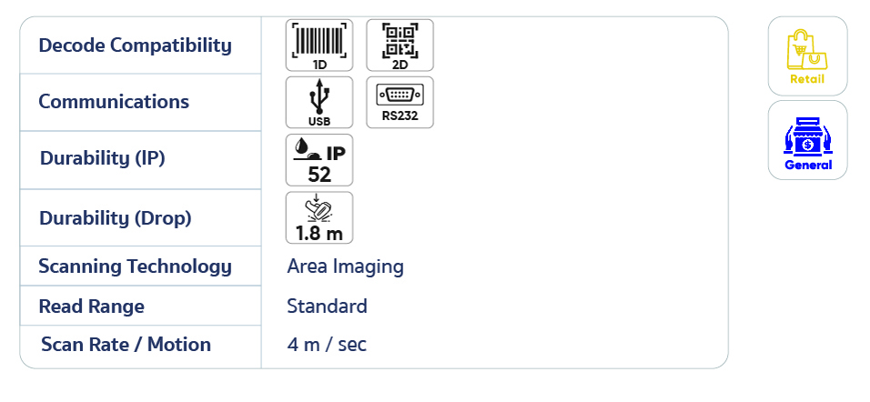 ในปัจจุบัน พนักงานค้าปลีกต้องเผชิญกับความท้าทายด้านการเคลื่อนไหวที่อิสระรอบๆ จุดขาย (POS) สายพานลำเลียง และลูกค้า ในขณะที่สถานี POS ที่ทันสมัยถูกออกแบบให้มีเทคโนโลยีที่ครบครัน พื้นที่ว่างจึงกลายเป็นทรัพยากรที่มีค่า Xenon Ultra เครื่องสแกนไร้สายช่วยให้พนักงานสามารถมุ่งเน้นไปที่การสร้างประสบการณ์ที่ดีที่สุดให้กับลูกค้า โดยลดเวลาที่เสียไปกับการจัดการสายเคเบิล และเพิ่มพื้นที่สำหรับการทำธุรกรรม